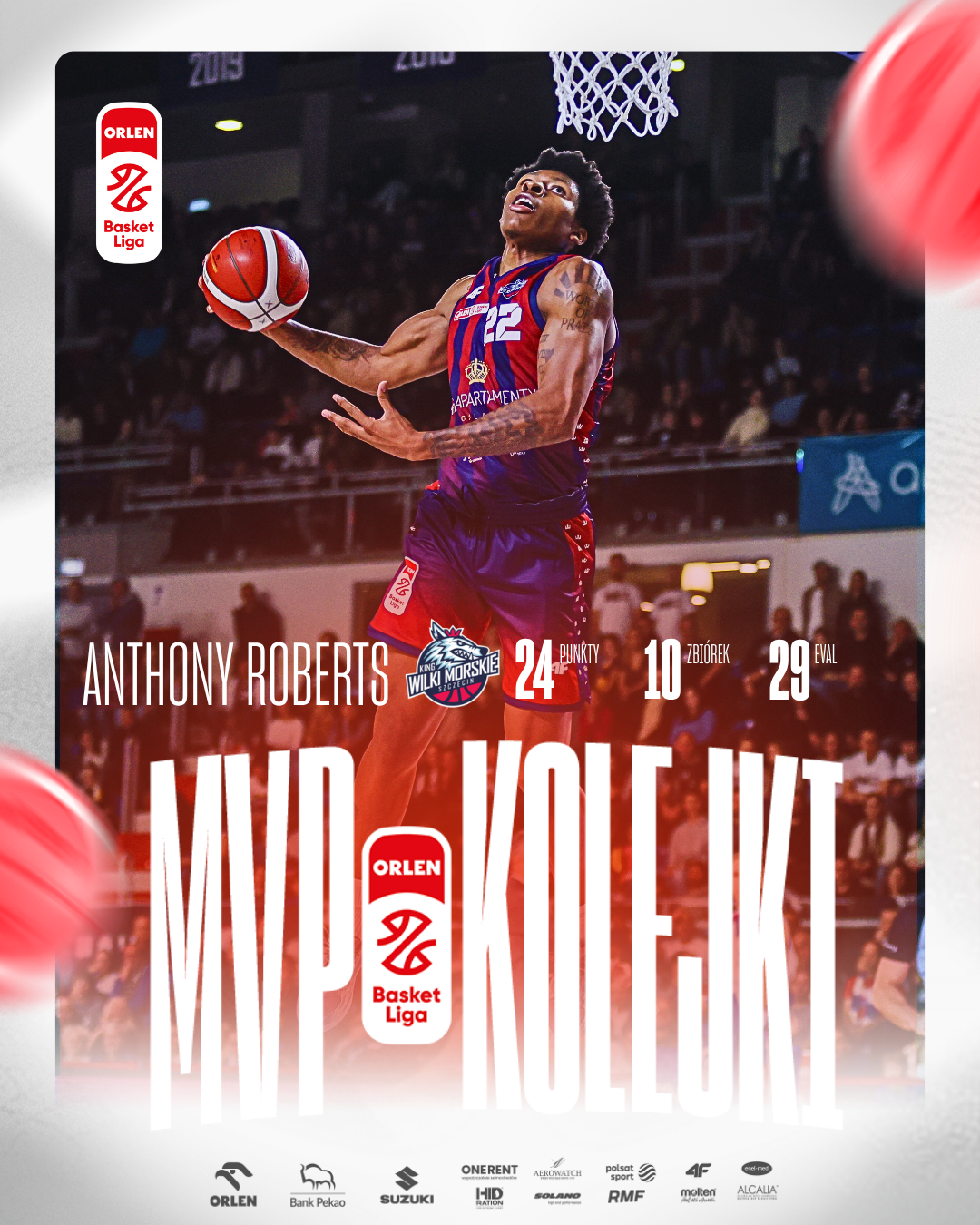 Anthony Roberts z Kinga Szczecin to MVP 2. kolejki ORLEN Basket Ligi w sezonie 2025/26.