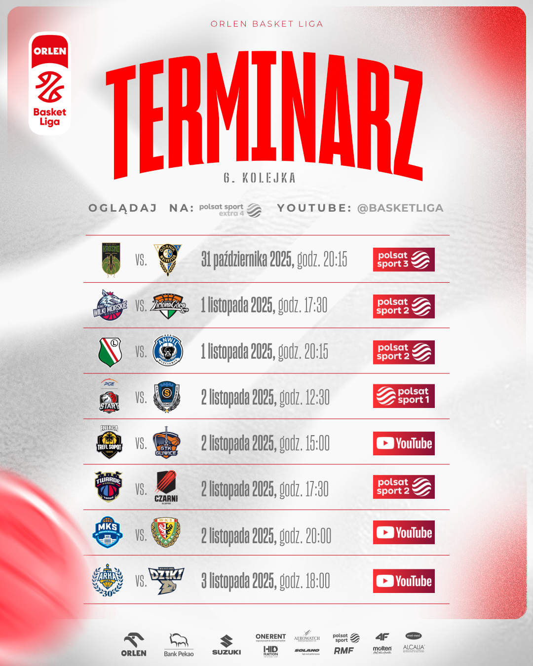W najbliższy weekend aż pięć spotkań ORLEN Basket Ligi będzie można zobaczyć w sportowych stacjach Polsatu! Na trzy pozostałe mecze zapraszamy na YouTube. Świetnie zapowiadają się przede wszystkim sobotnie mecze Kinga z Zastalem oraz Anwilu z Legią.