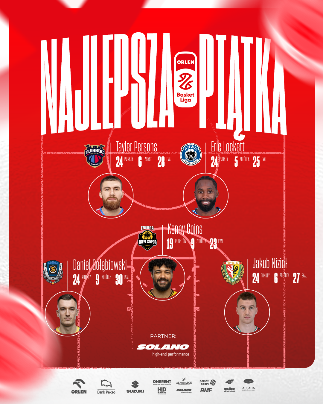 Tayler Persons, Eric Lockett, Daniel Gołębiowski, Jakub Nizioł, Kenny Goins - to najlepsza piątka 9. kolejki ORLEN Basket Ligi w sezonie zasadniczym 2025/26.