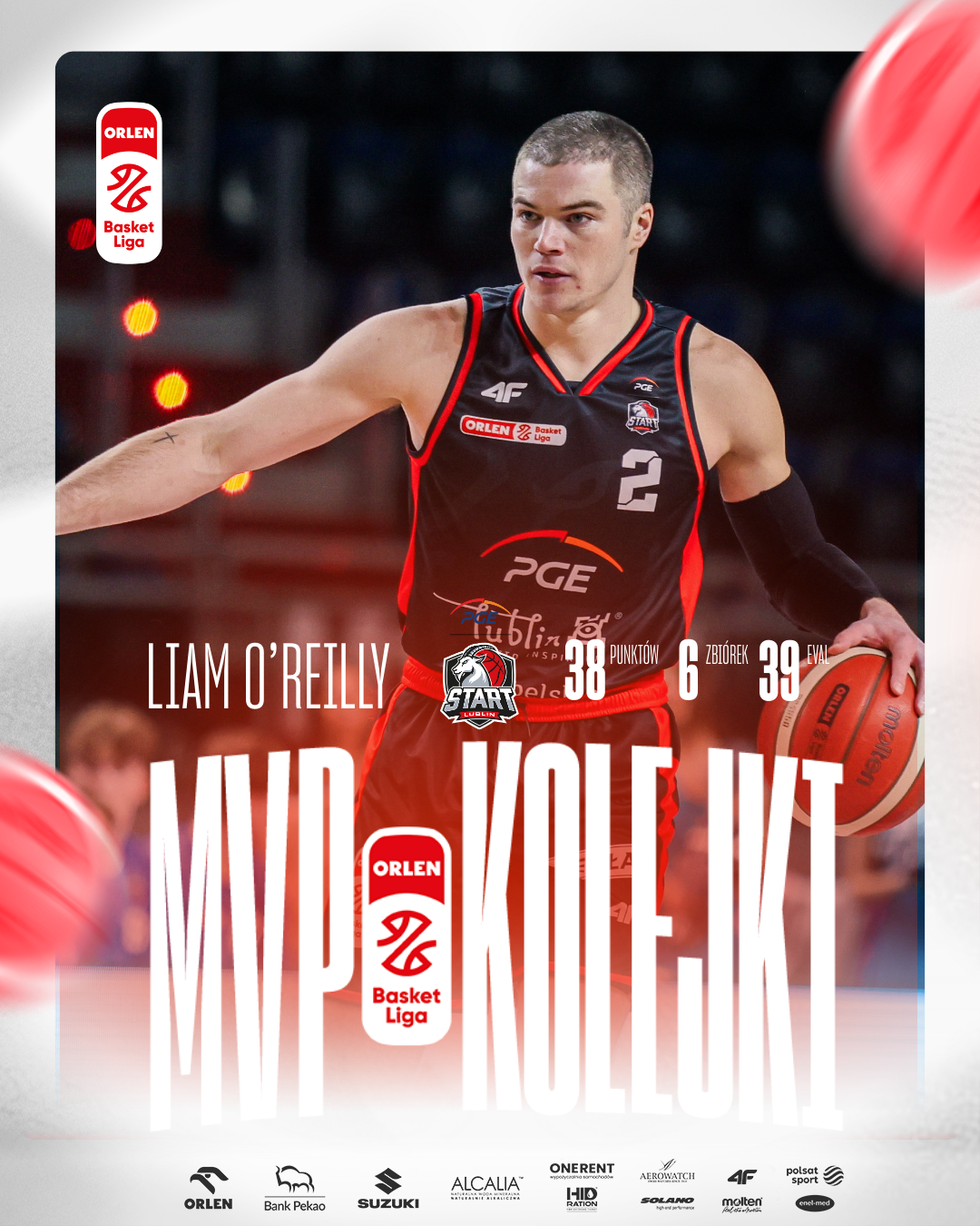 Liam O’Reilly z PGE Startu Lublin to MVP 18. kolejki ORLEN Basket Ligi w sezonie 2025/26.