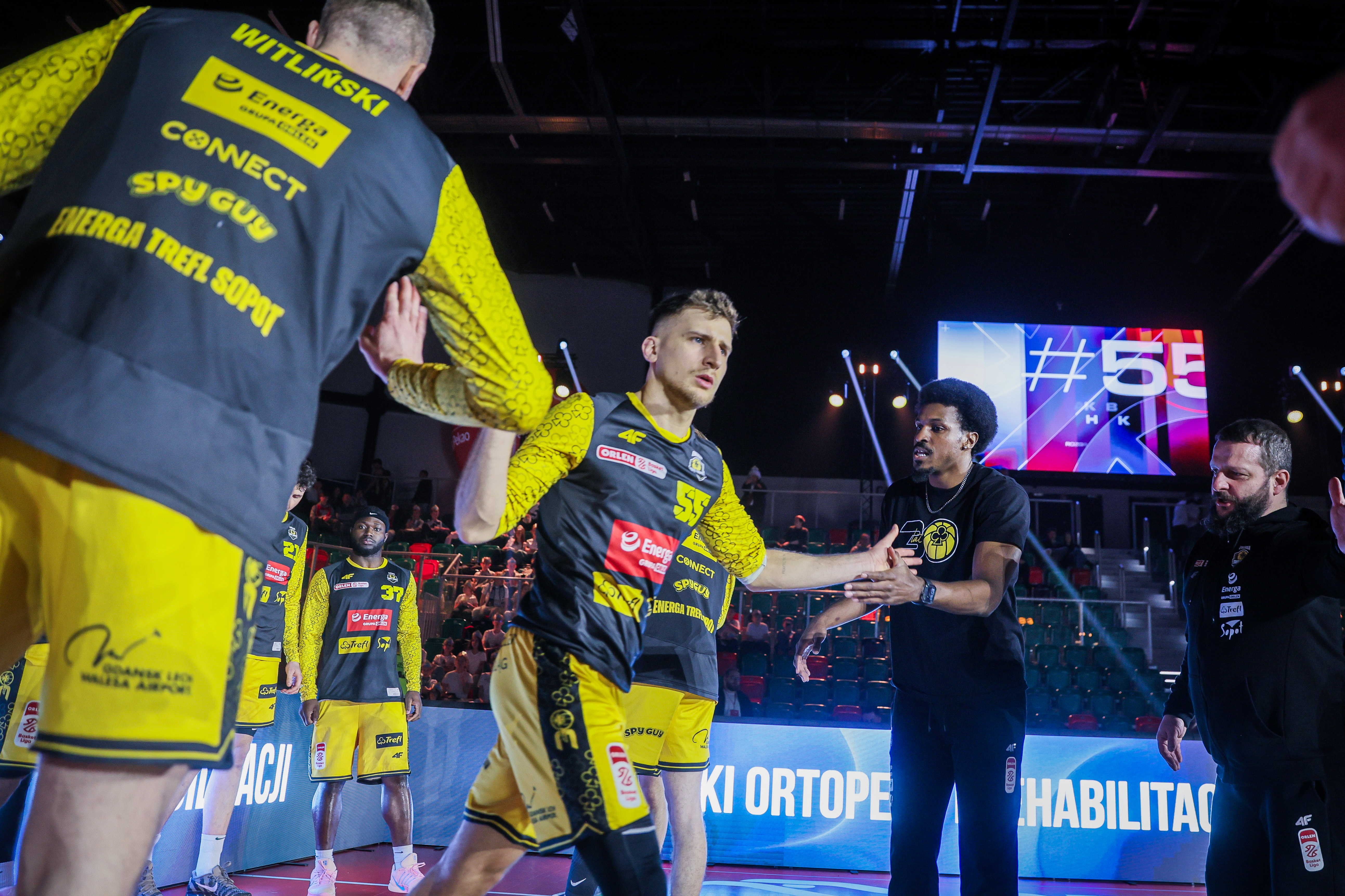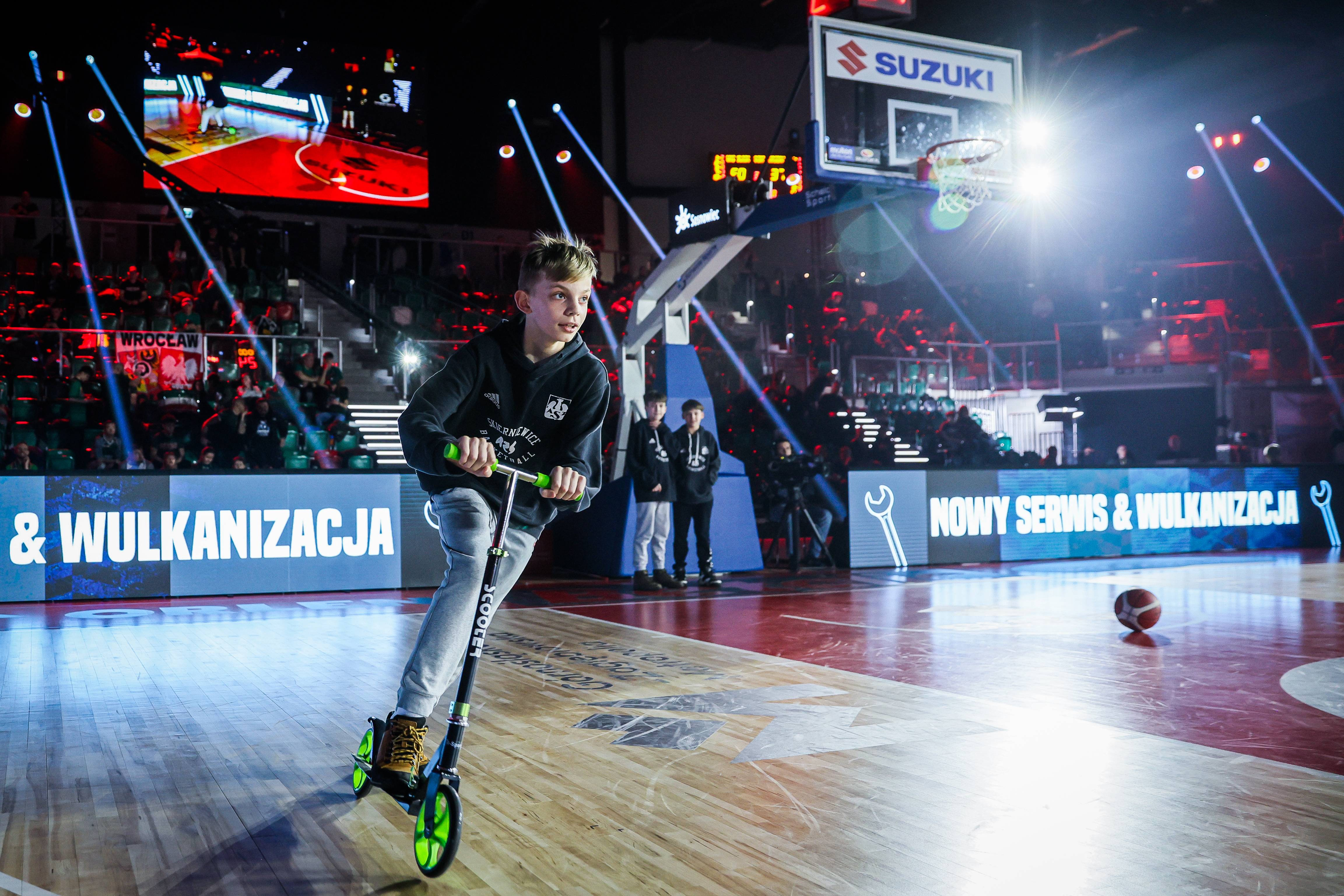 Dodatkowe światła i nagłośnienie w Arenie Sosnowiec pomagały zbudować atmosferę koszykarskiego święta! Efektowne prezentacje drużyn, informacje i ciekawostki na telebimie, a także “kiss cam” i “dance cam”! Również zespół Cheerleaders Wrocław mógł dzięki temu pokazać jeszcze lepsze układy taneczne!