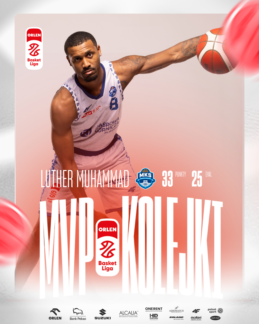 Luther Muhammad z MKS Dąbrowa Górnicza to MVP 22. kolejki ORLEN Basket Ligi w sezonie 2025/26.