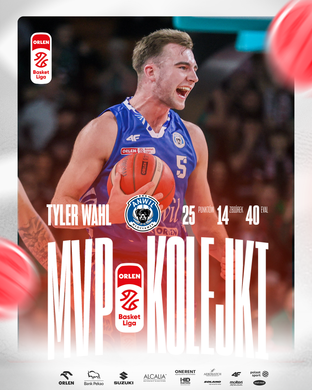 Tyler Wahl z Anwilu Włocławek to MVP 26. kolejki ORLEN Basket Ligi w sezonie 2025/26.