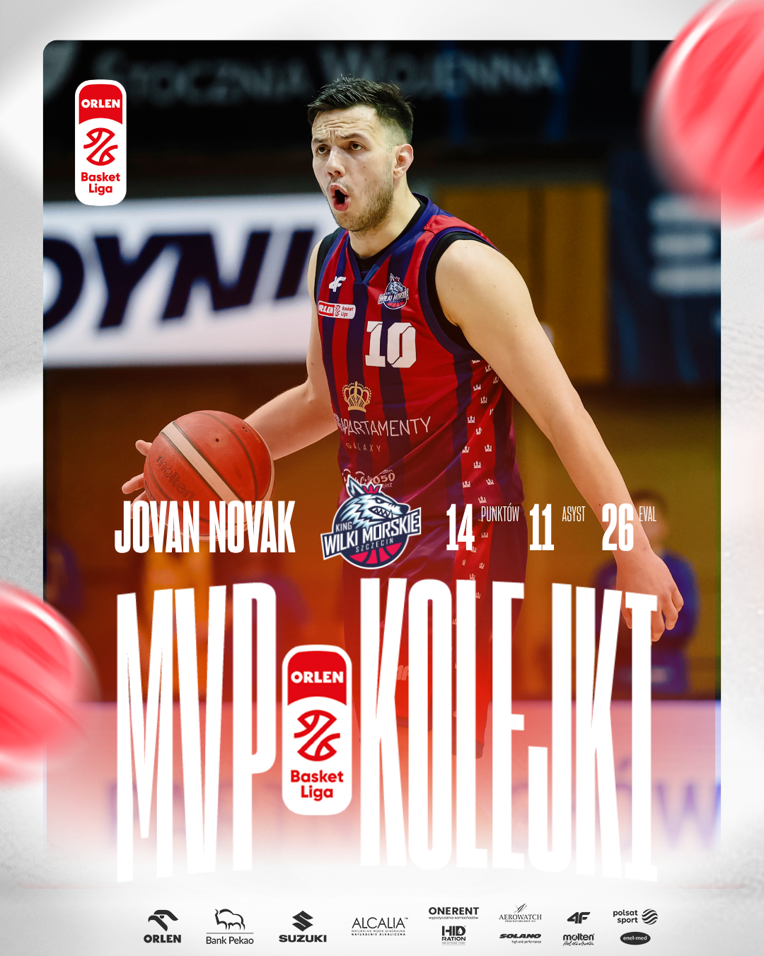 Jovan Novak z Kinga Szczecin to MVP 27. kolejki ORLEN Basket Ligi w sezonie 2025/26.