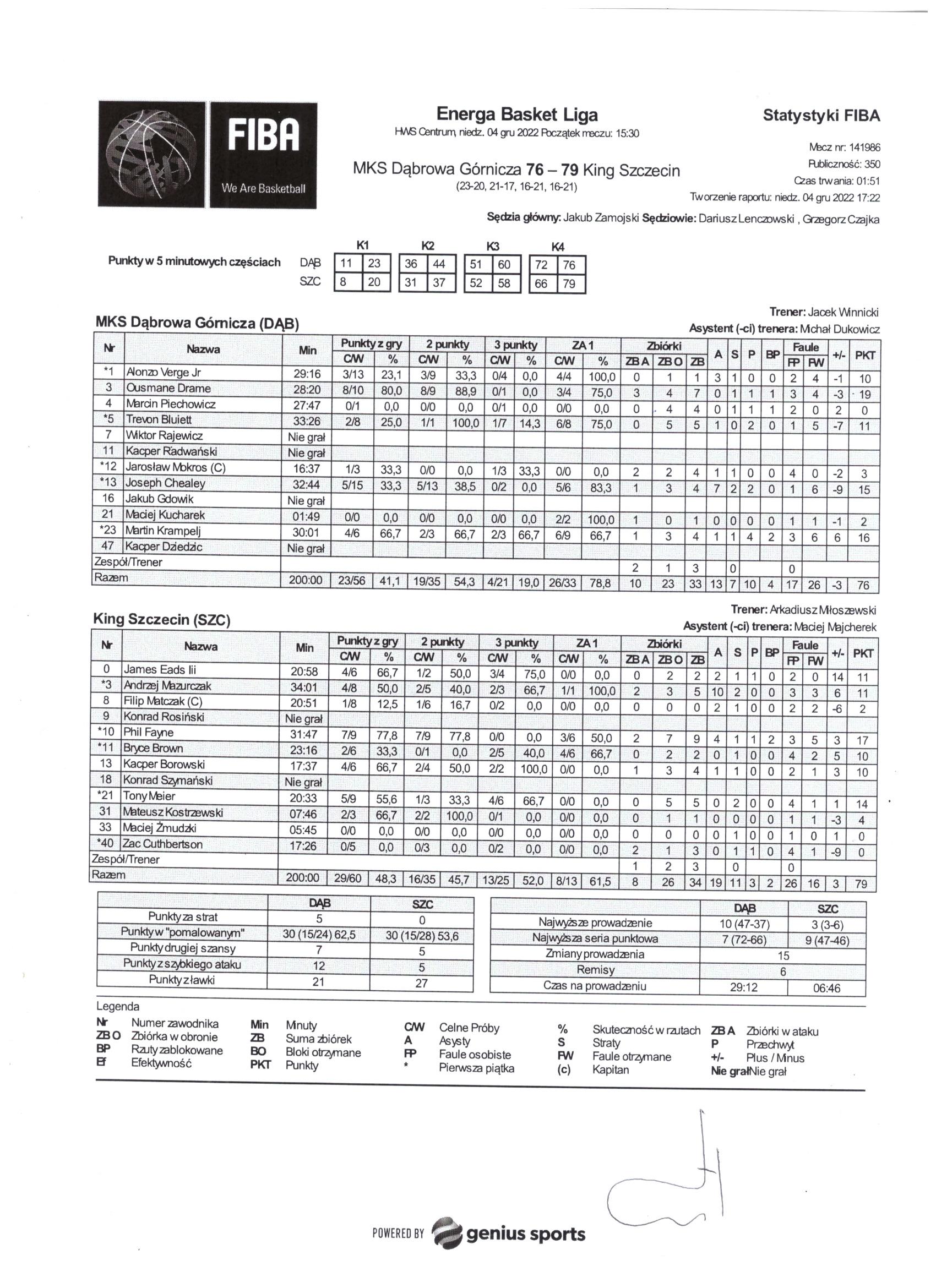 | Punkty graczy z ławki | 21 | 27 |
