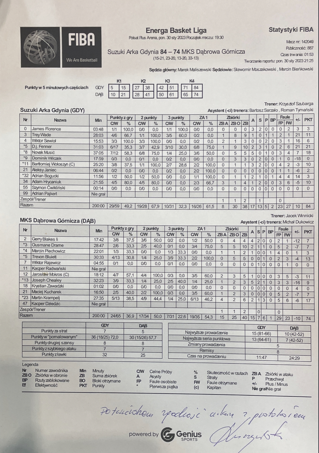 | Punkty graczy z ławki | 32 | 25 |