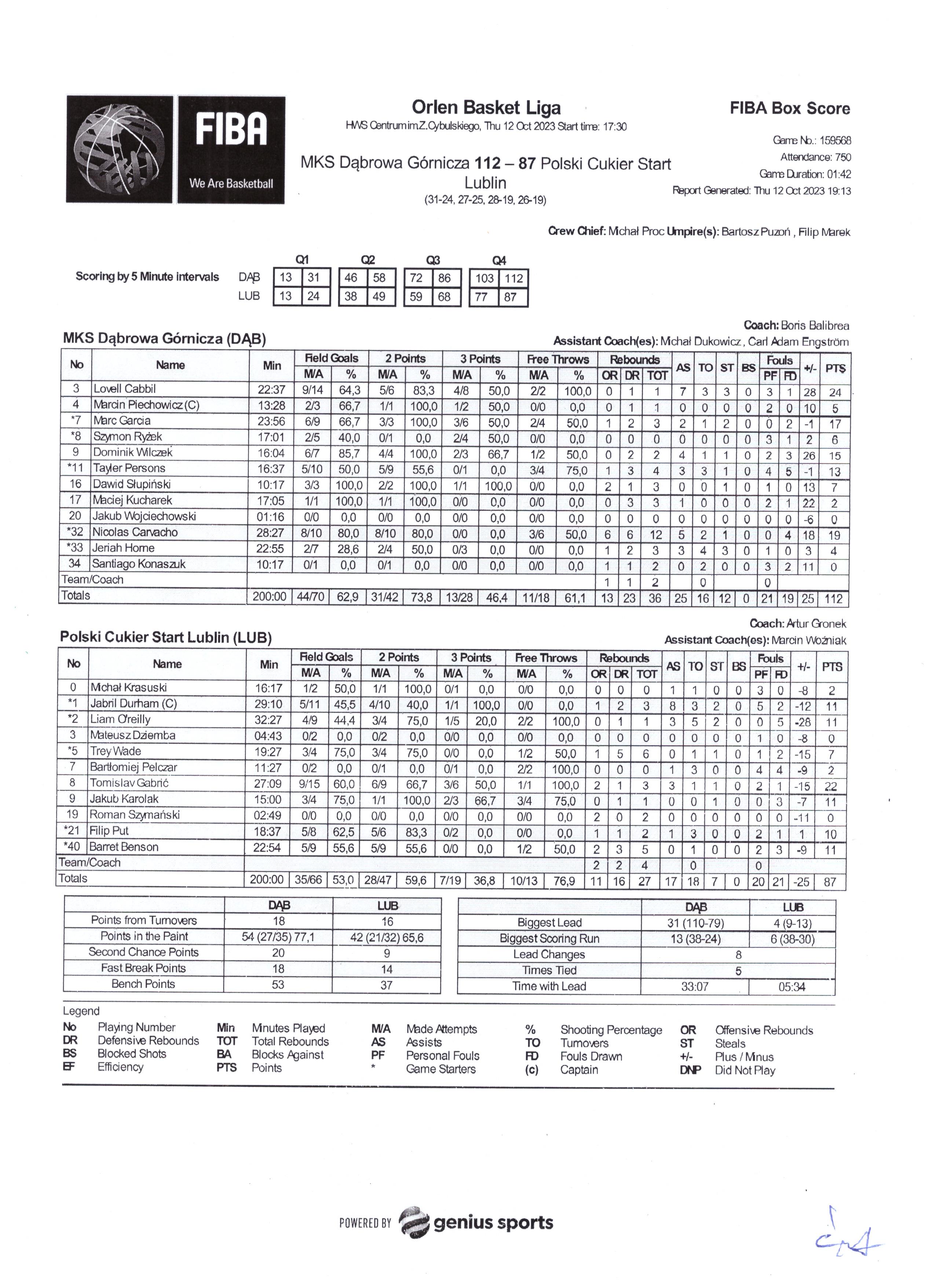 | Punkty graczy z ławki | 53 | 37 |