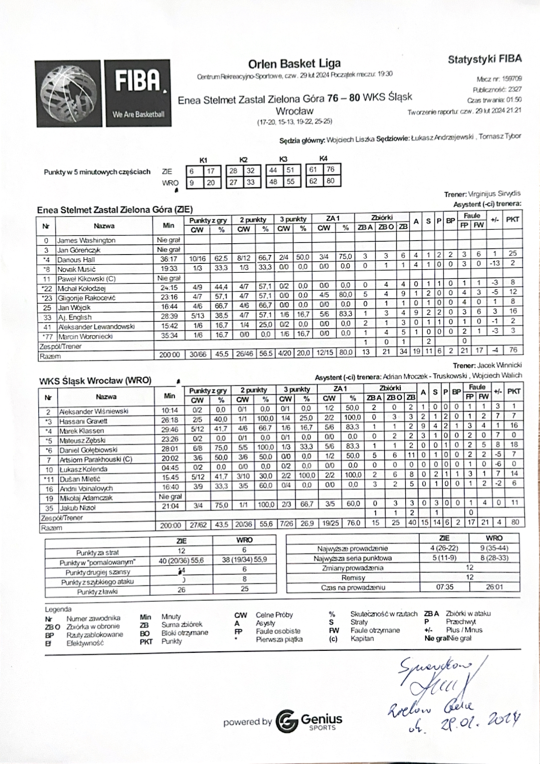Runda Zasadnicza - 22 kolejka 29.02.2024 / 19:30