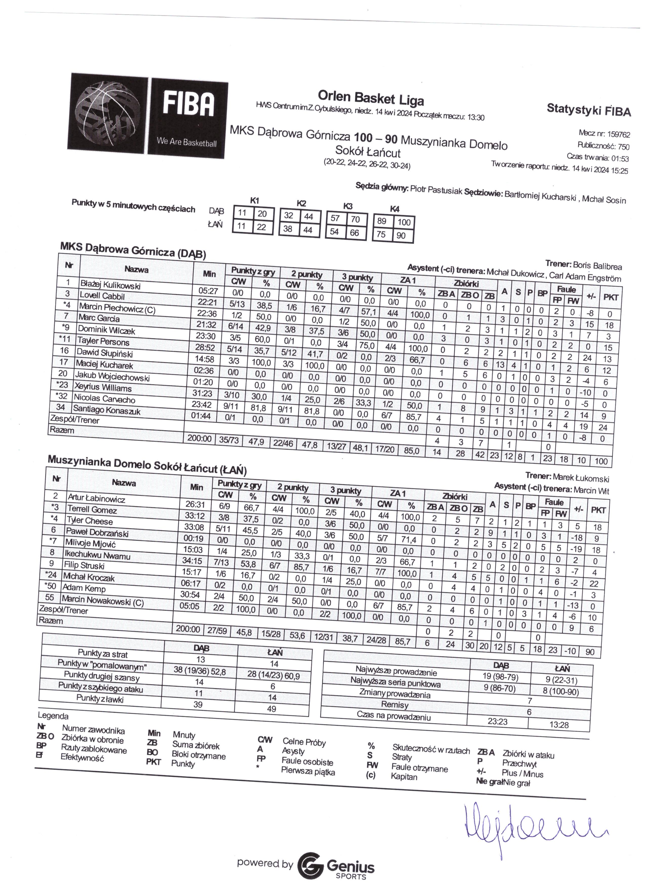 | Punkty graczy z ławki | 39 | 49 |