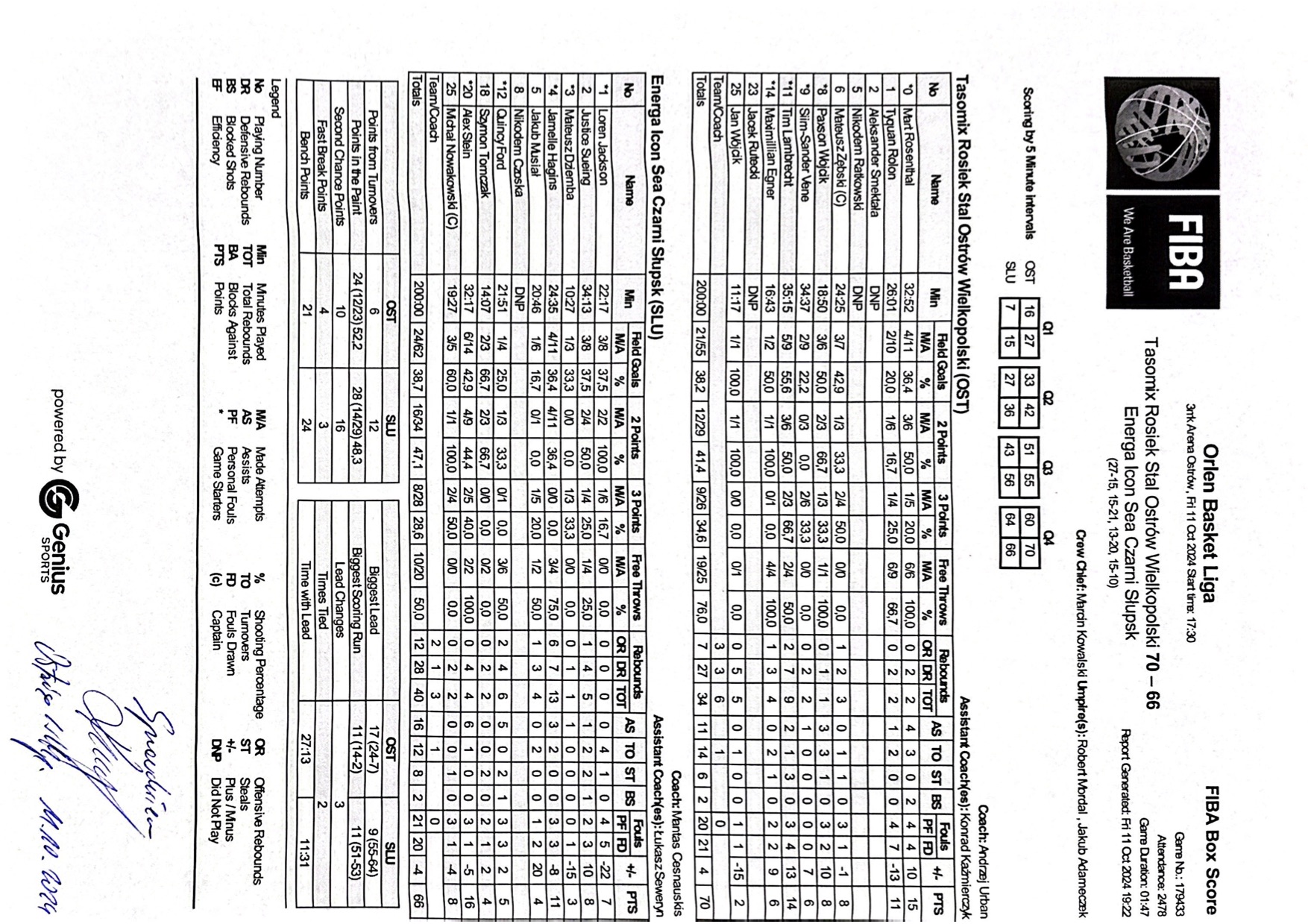 | Punkty graczy z ławki | 21 | 24 |