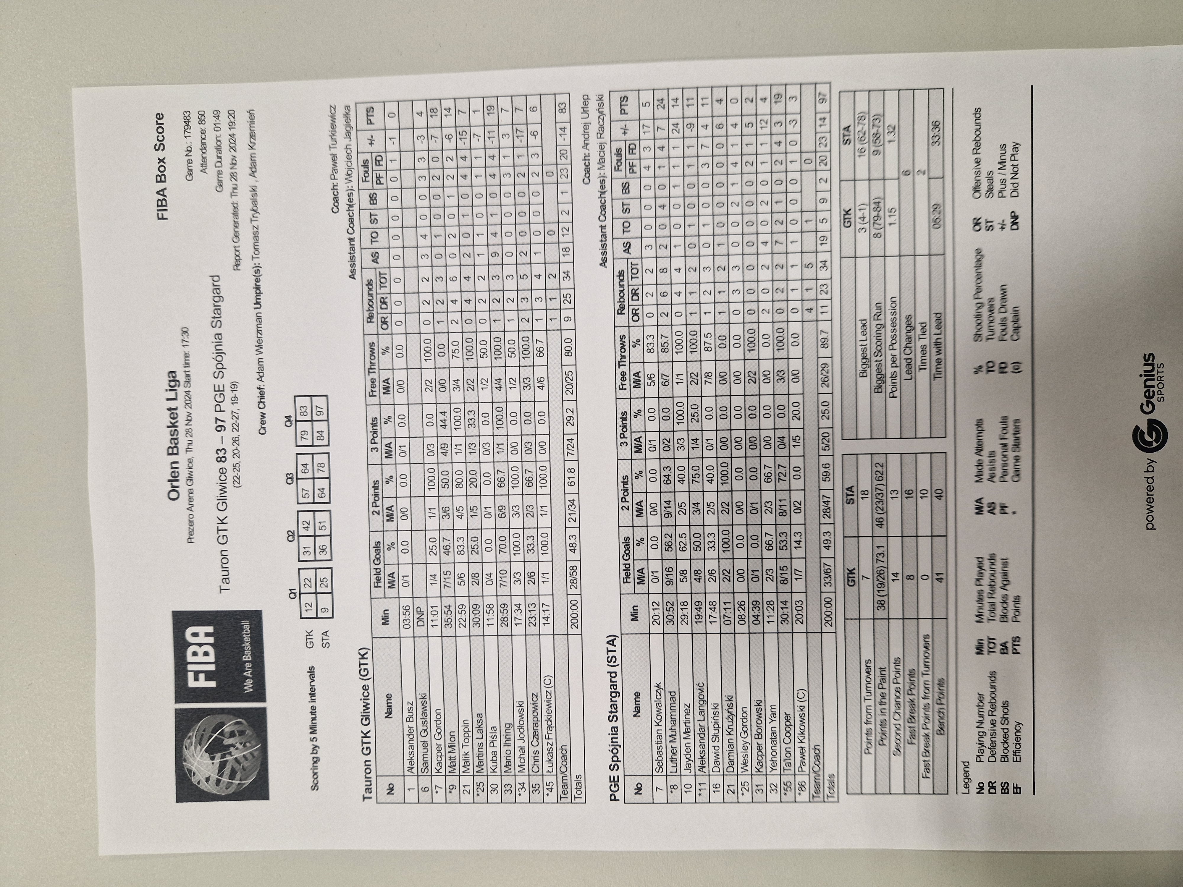 Runda Zasadnicza - 8 kolejka 28.11.2024 / 17:30Prezero Arena Gliwice, Akademicka 50, 44-100 Gliwice22:25/20:26/22:27/19:19