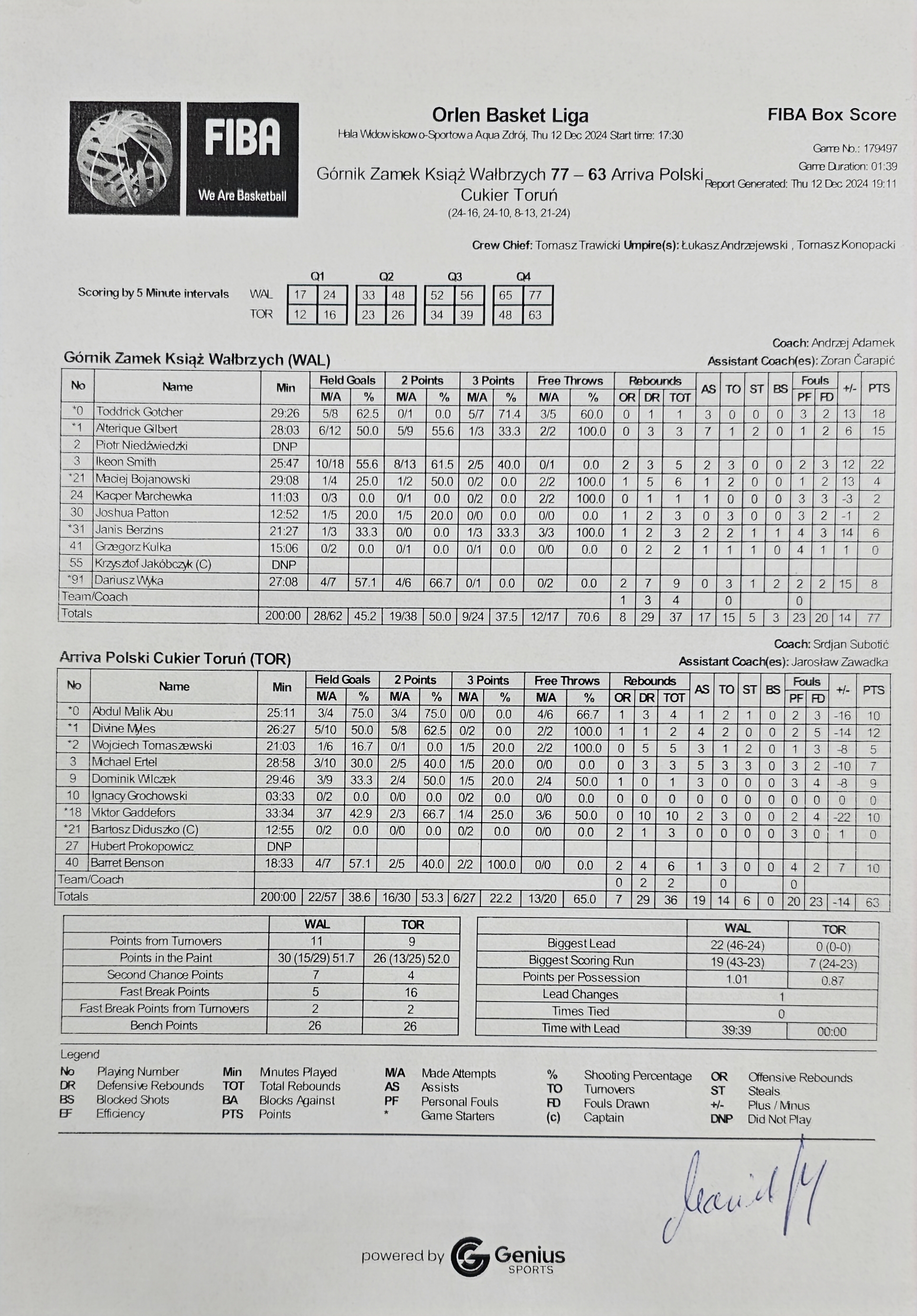 Przebieg meczu (wyniki kwart)