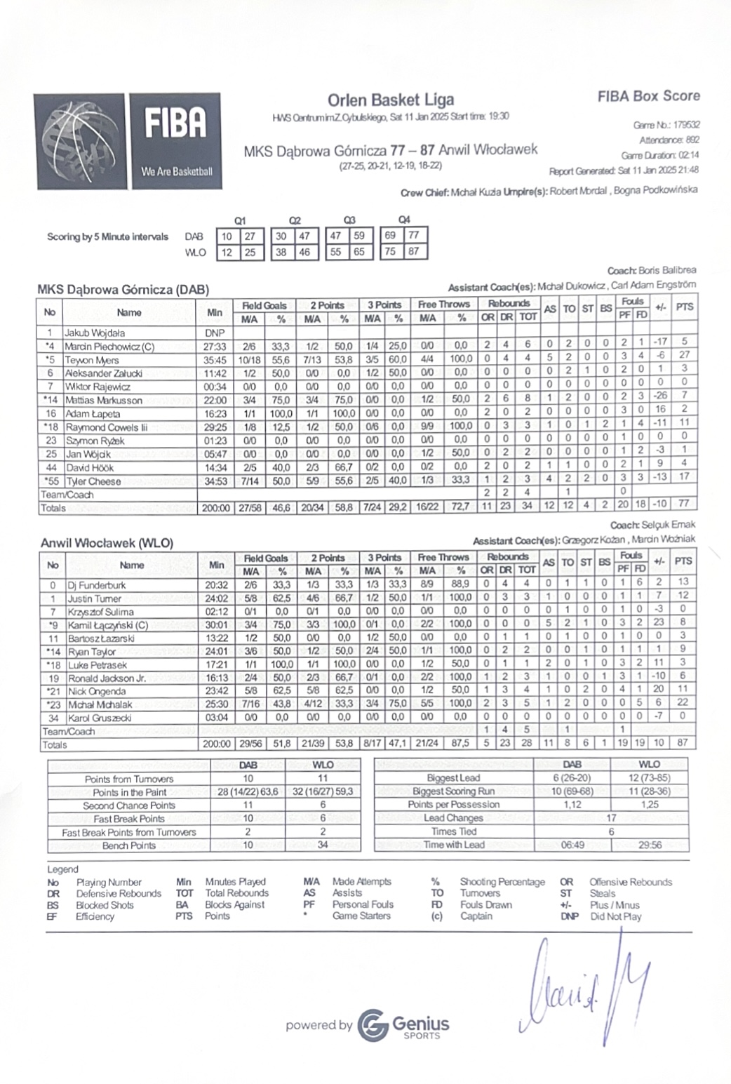| Punkty graczy z ławki | 10 | 34 |
