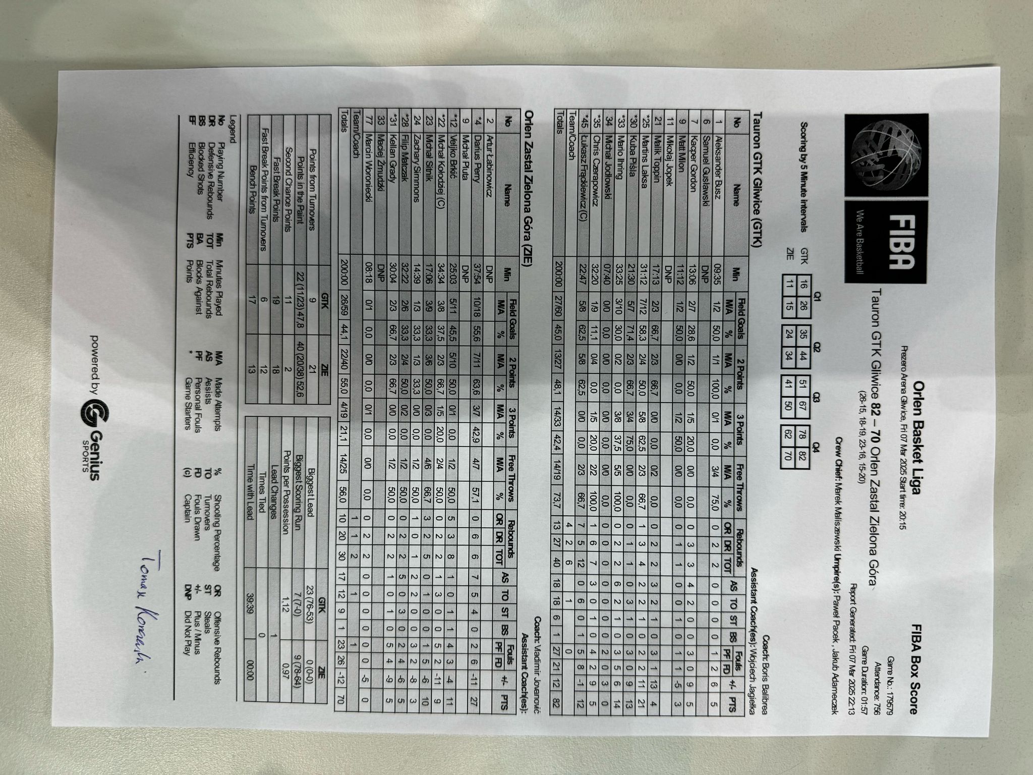Runda Zasadnicza - 20 kolejka 7.03.2025 / 20:15Prezero Arena Gliwice, Akademicka 50, 44-100 Gliwice26:15/18:19/23:16/15:20