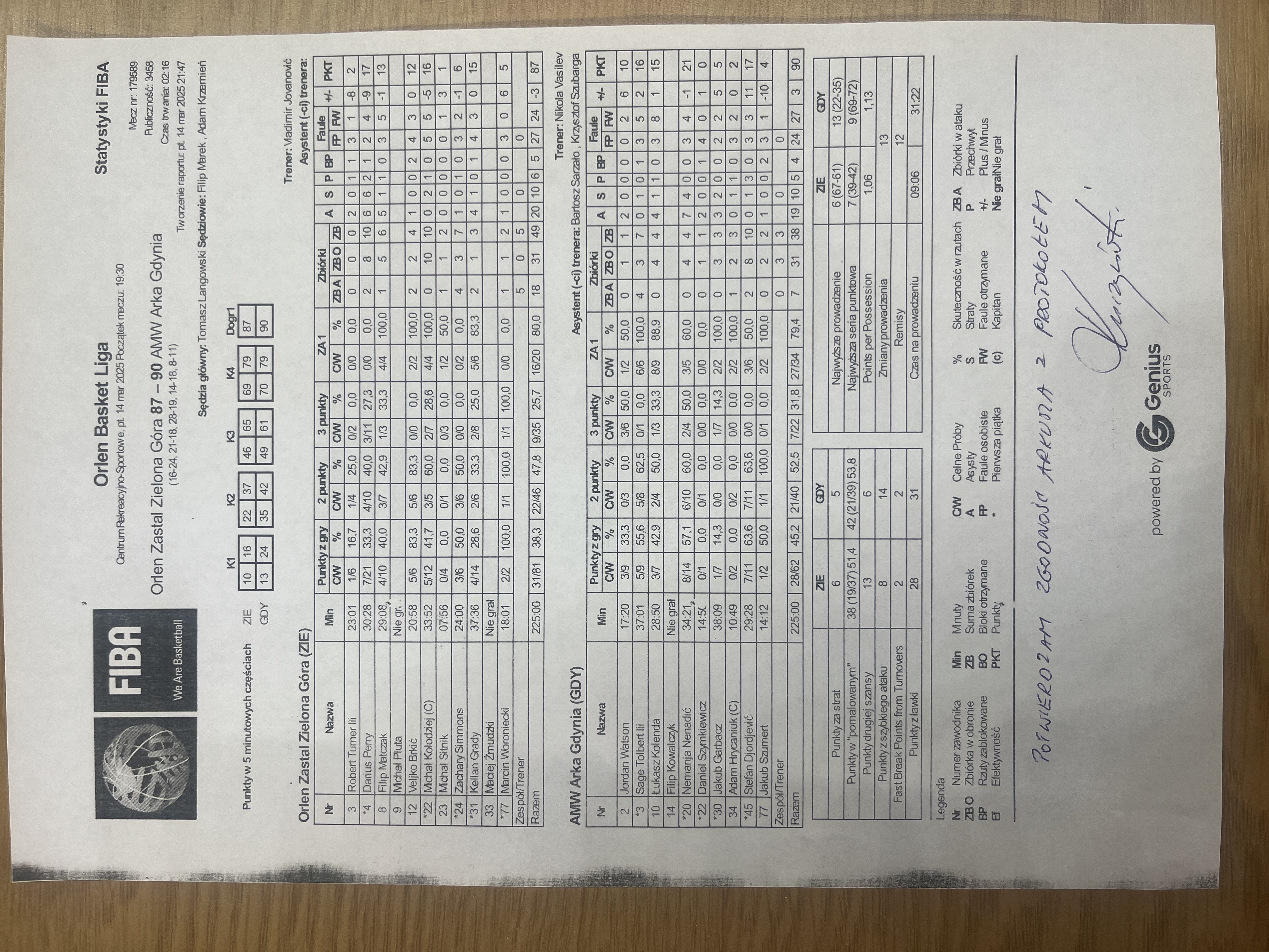 Runda Zasadnicza - 21 kolejka 14.03.2025 / 19:30Centrum Rekreacyjno-Sportowe, Sulechowska 41, 65-022 Zielona Góra16:24/21:18/28:19/14:18/8:11 (d)
