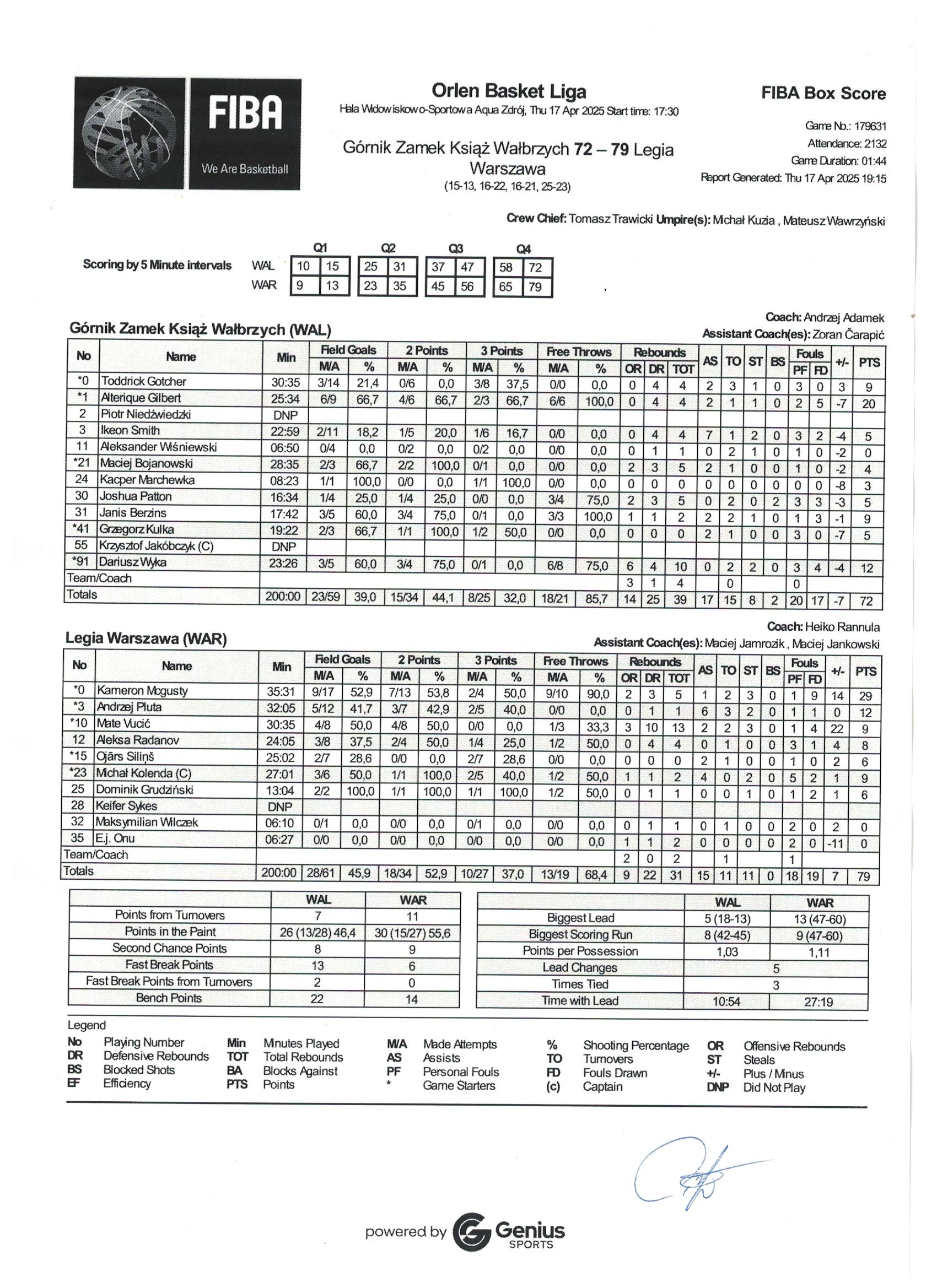 | Punkty graczy z ławki | 22 | 14 |
