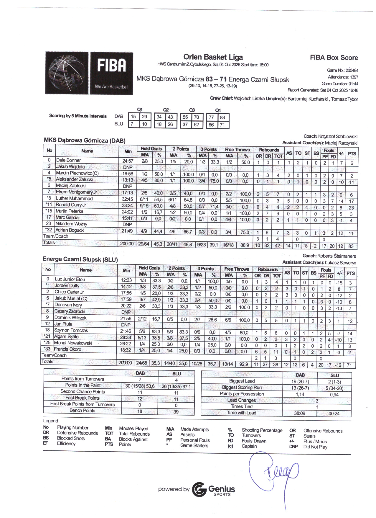 | Punkty graczy z ławki | 18 | 39 |