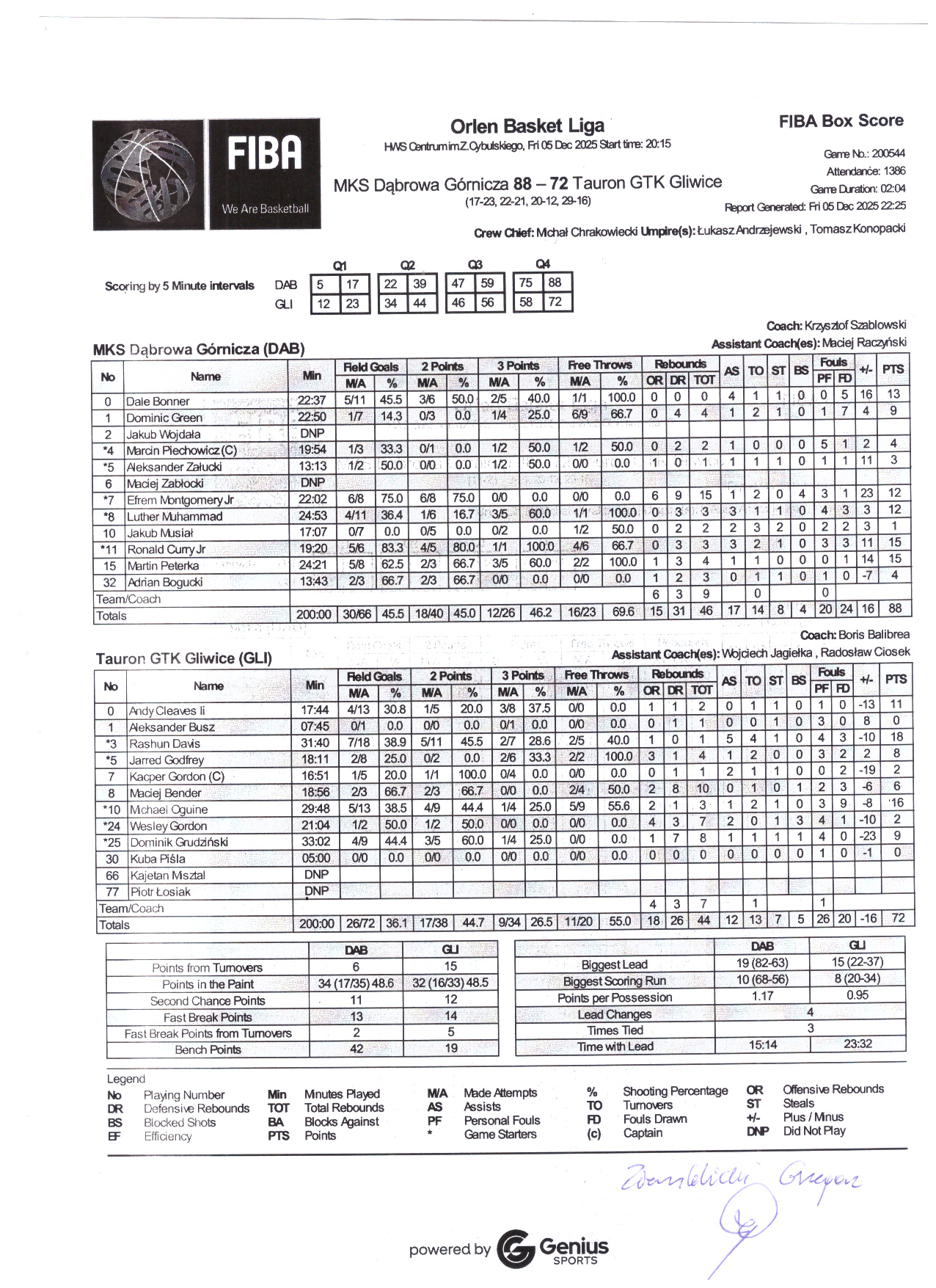 | Punkty graczy z ławki | 42 | 19 |