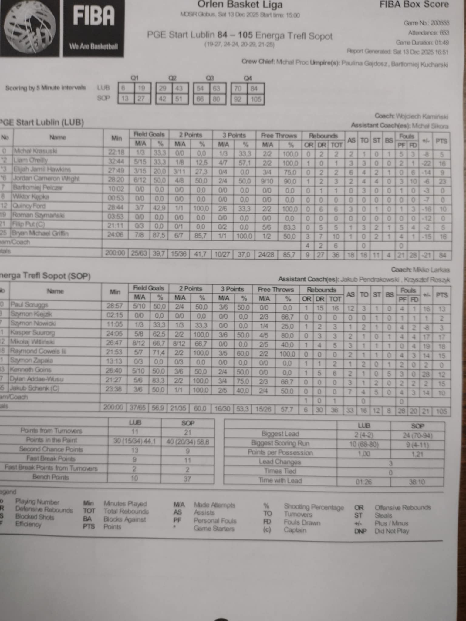 Runda Zasadnicza - 11 kolejka 13.12.2025 / 15:00MOSiR Globus, Kazimierza Wielkiego 8, 20-611 Lublin19:27/24:24/20:29/21:25