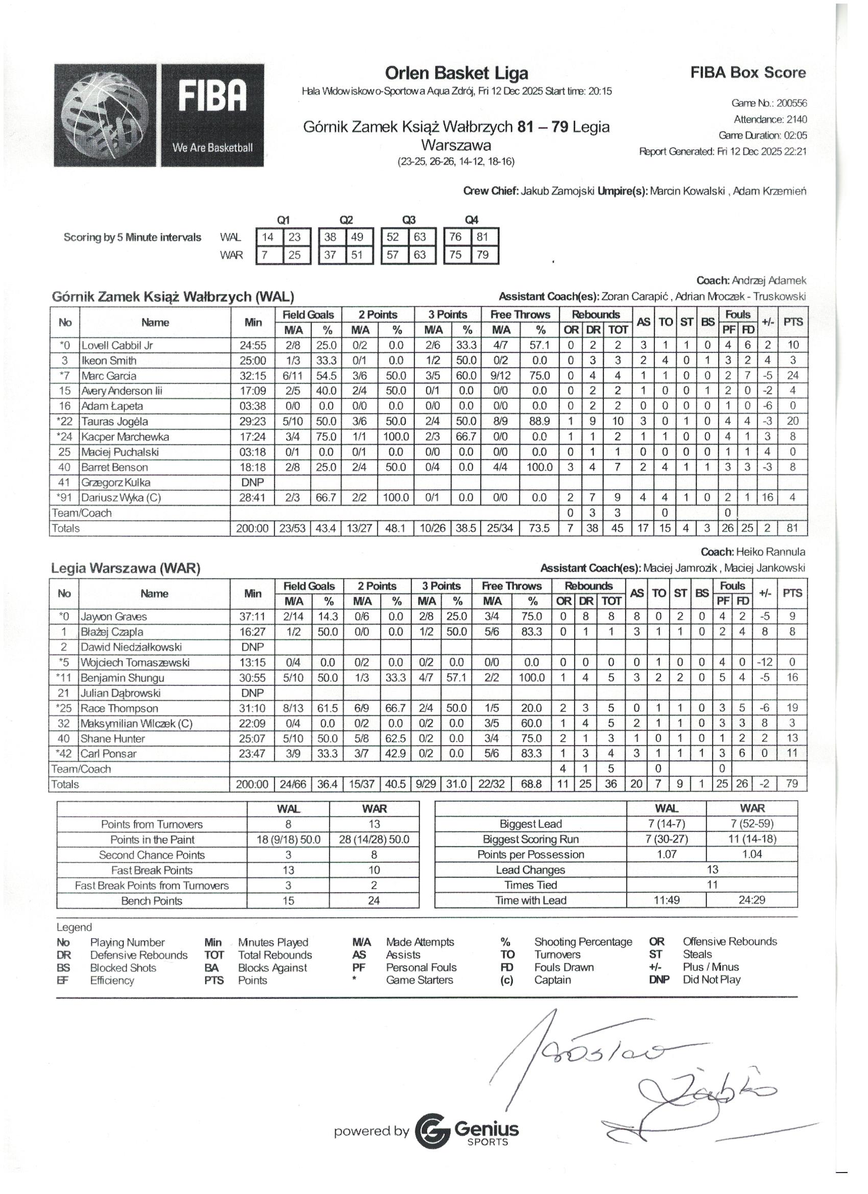 Runda Zasadnicza - 11 kolejka 12.12.2025 / 20:15Hala Widowiskowo-Sportowa Aqua Zdrój, ul. Ratuszowa 6, 58-304 Wałbrzych23:25/26:26/14:12/18:16