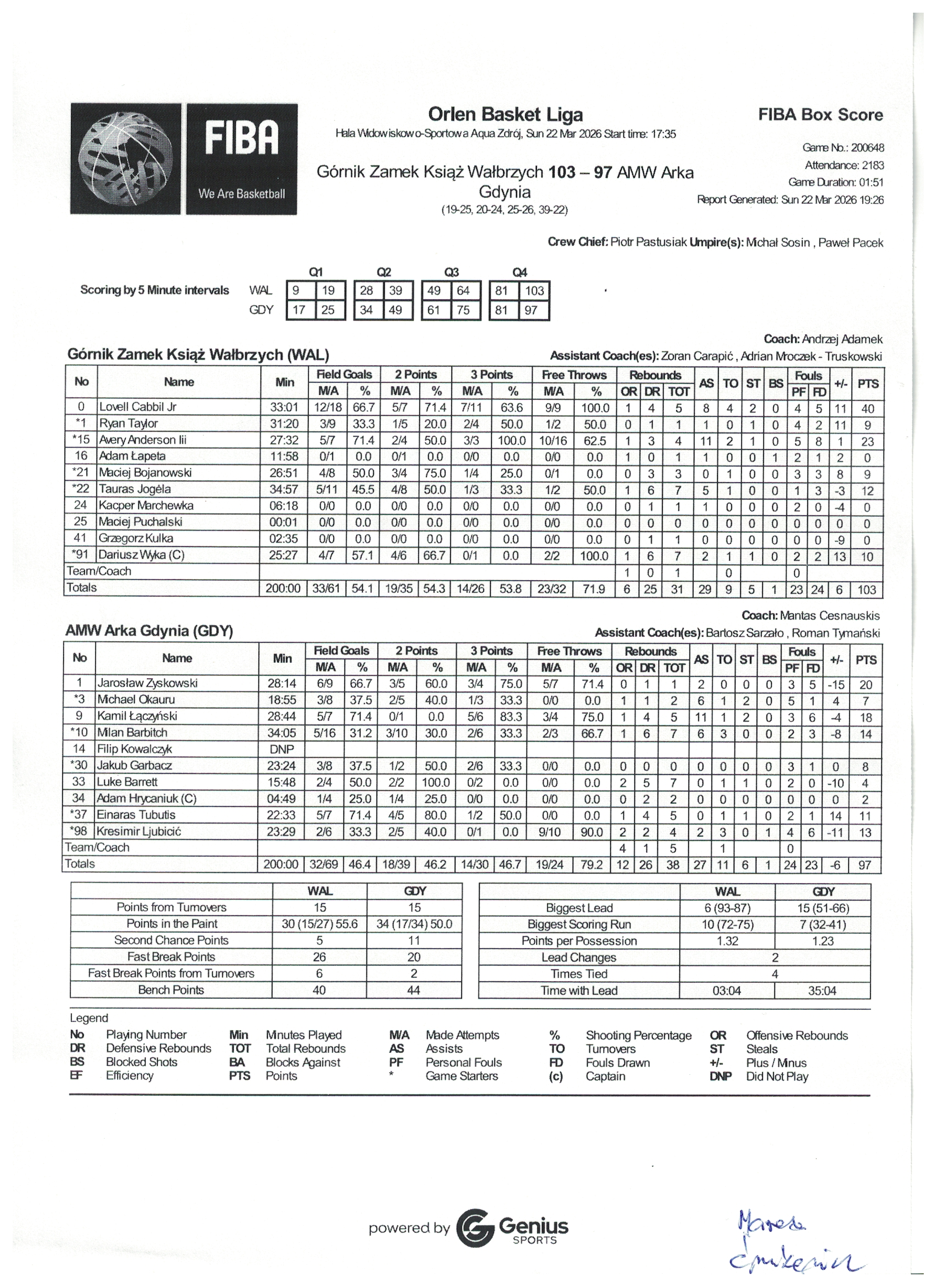 Runda Zasadnicza - 23 kolejka 22.03.2026 / 17:30Hala Widowiskowo-Sportowa Aqua Zdrój, ul. Ratuszowa 6, 58-304 Wałbrzych19:25/20:24/25:26/39:22