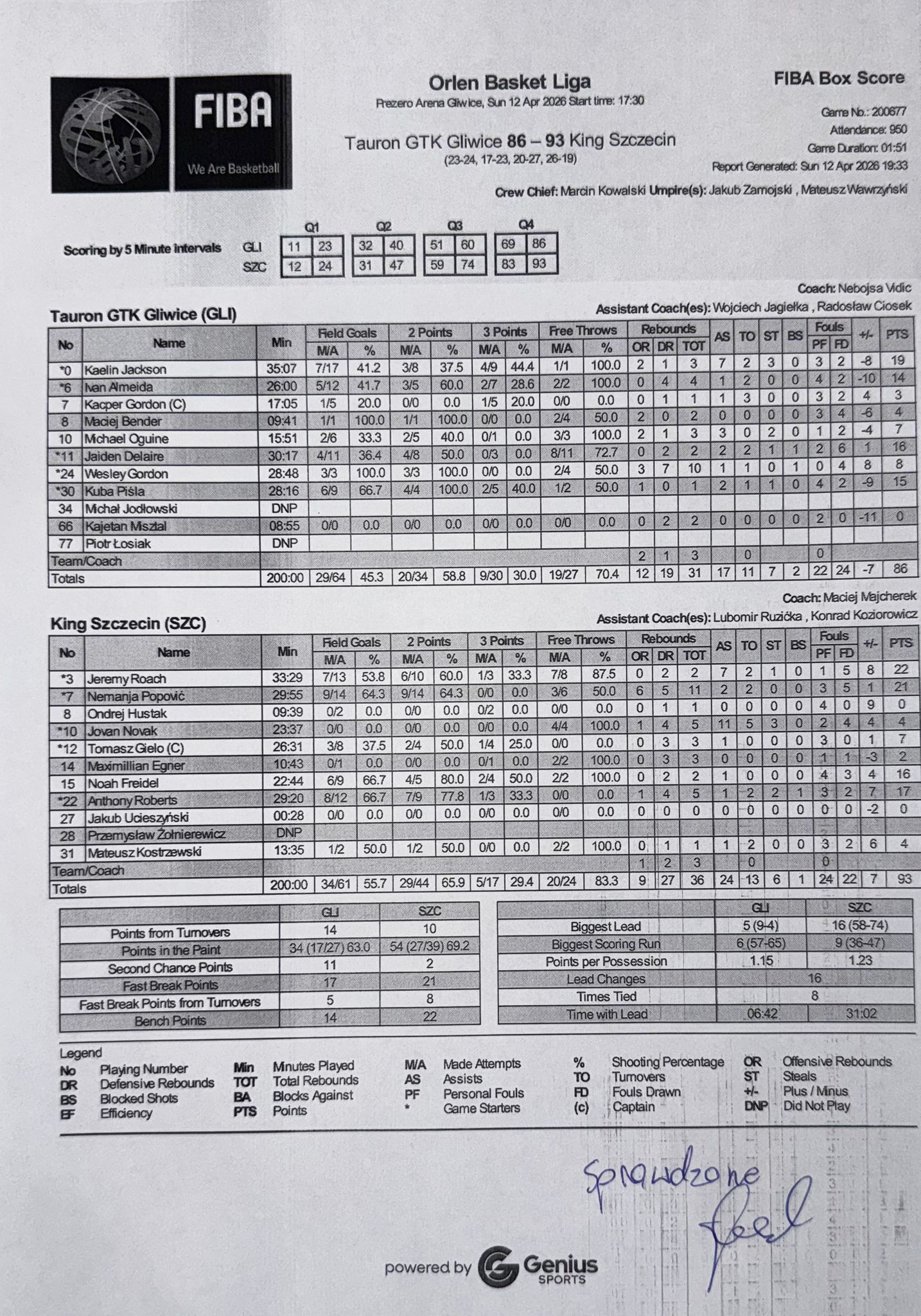 Runda Zasadnicza - 26 kolejka 12.04.2026 / 17:30Prezero Arena Gliwice, Akademicka 50, 44-100 Gliwice23:24/17:23/20:27/26:19