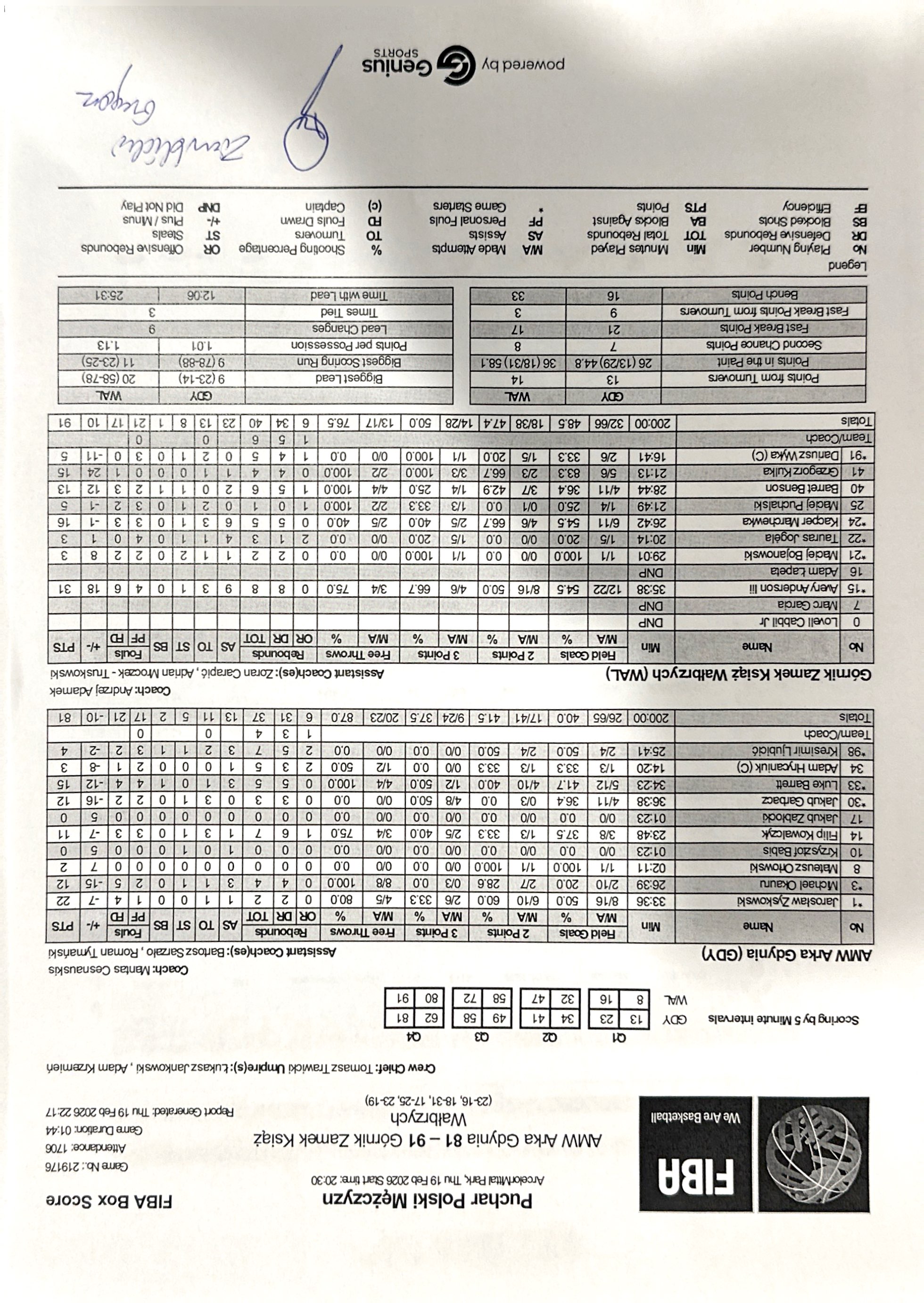 | Punkty graczy z ławki | 16 | 33 |