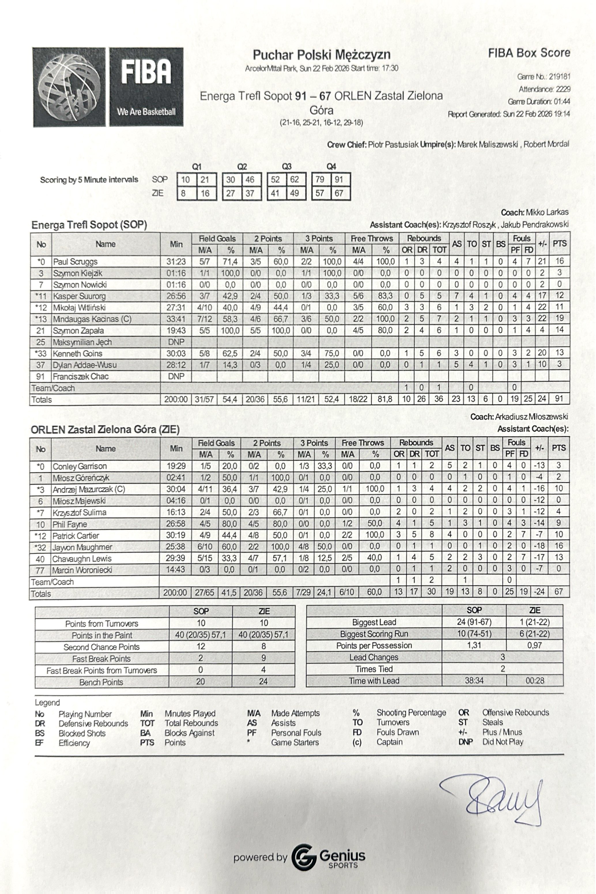 | Punkty graczy z ławki | 20 | 24 |