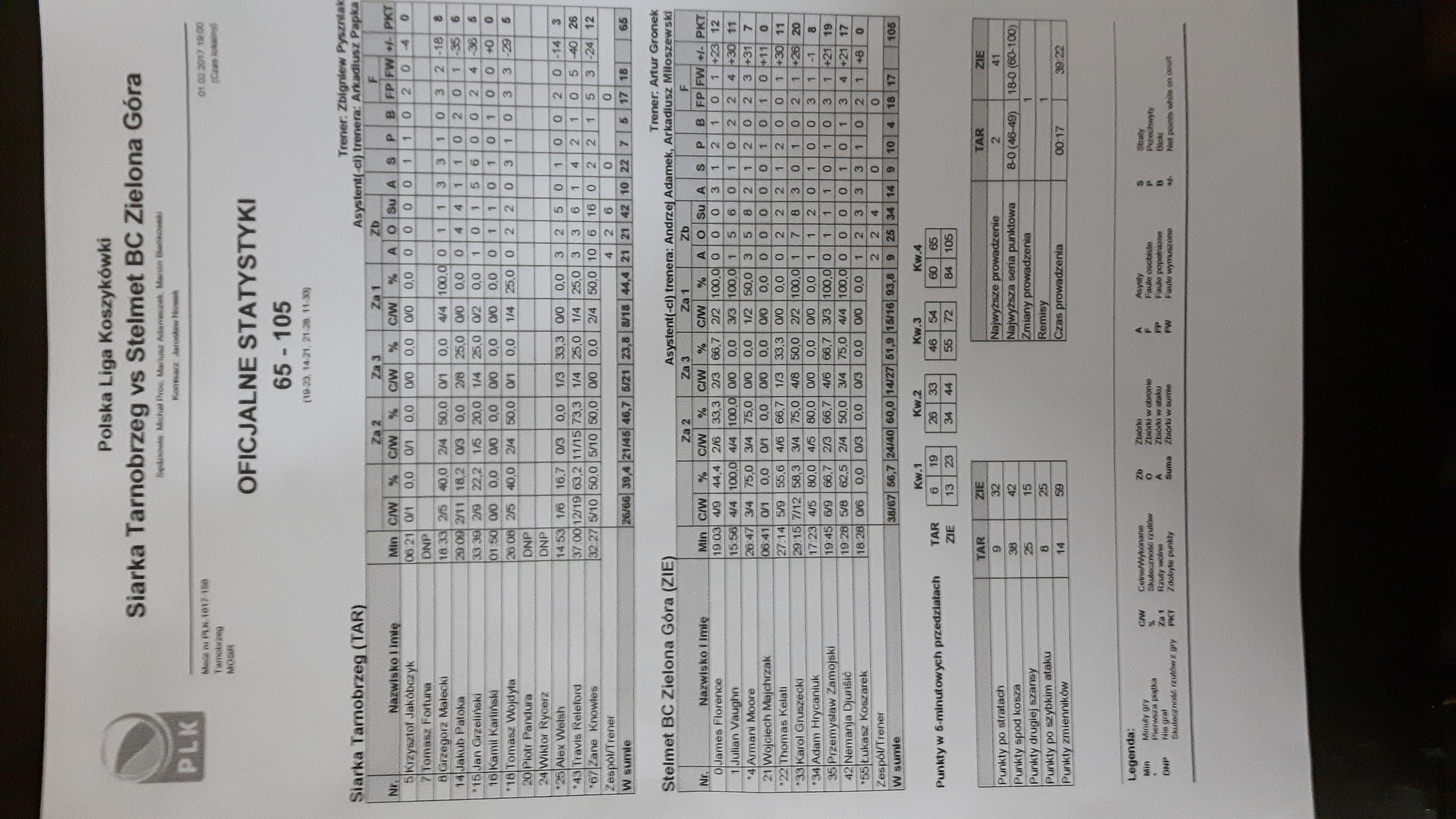 Runda Zasadnicza - 17 kolejka 1.02.2017 / 19:00MOSiR, Al. Niepodległości 2, 39-400 Tarnobrzeg19:23/14:21/21:28/11:33