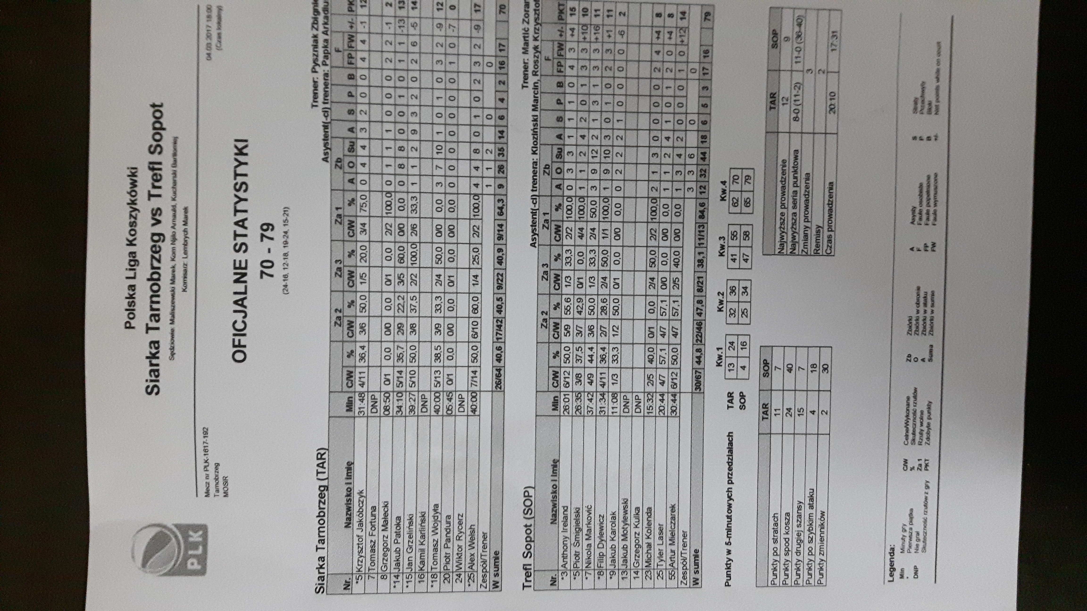 Runda Zasadnicza - 21 kolejka 4.03.2017 / 18:00MOSiR, Al. Niepodległości 2, 39-400 Tarnobrzeg24:16/12:18/19:24/15:21