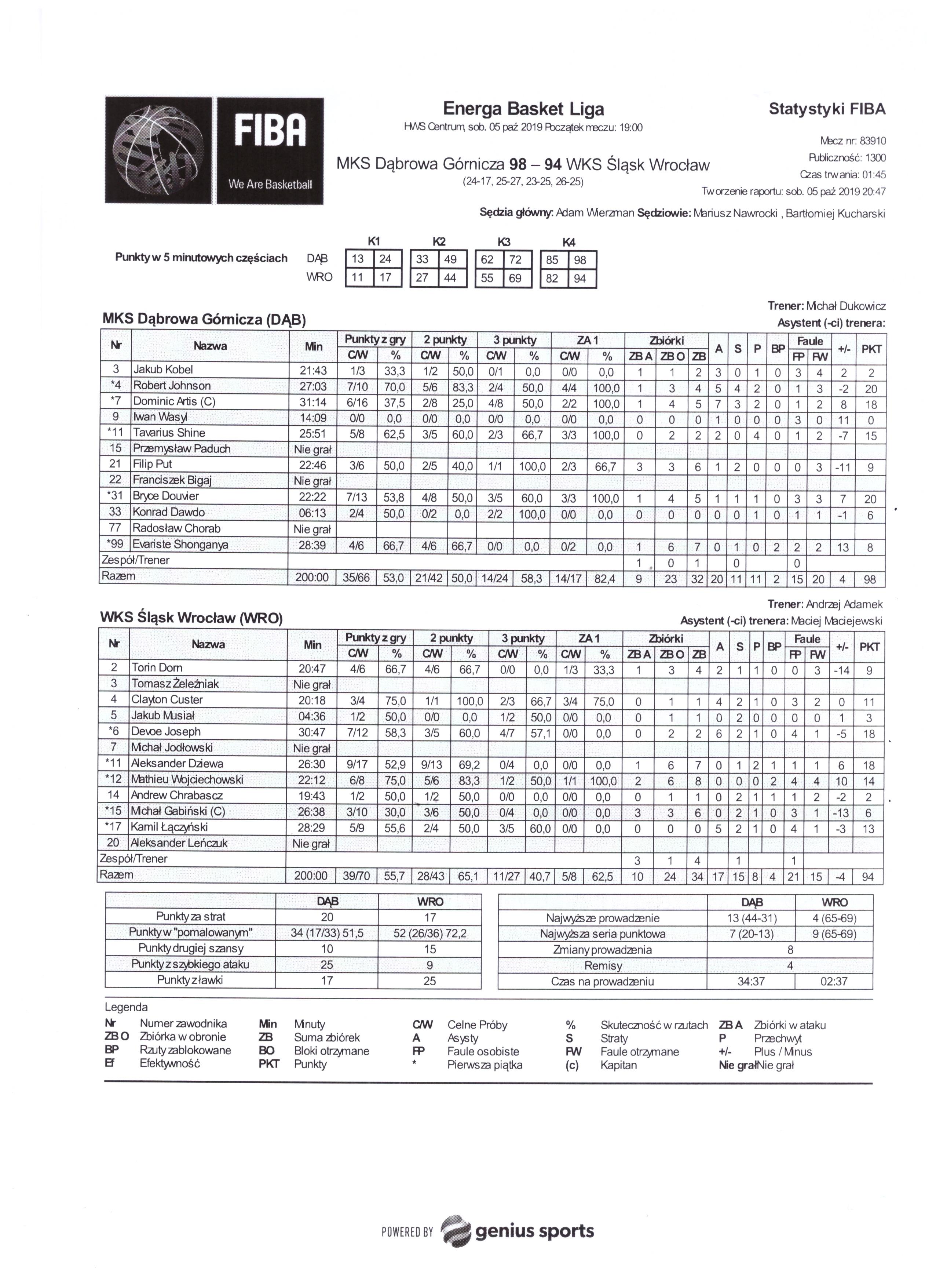 Przebieg meczu (wyniki kwart)